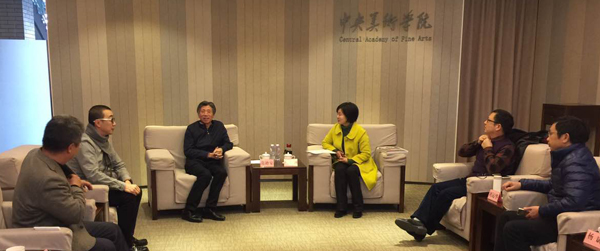 12月6日上午,湖南省常德市鼎城区区委常委、宣传部长林红华,常德市鼎城区人大常委会副主任刘运华等一行来我校,与壁画系就“沅江画壁”展览设计思路、实地情况及初步方案等开展交流,院长范迪安会见交流团一行。