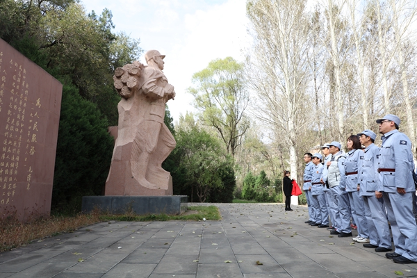 学员在“为人民服务”讲话台旧址重温《为人民服务》演讲